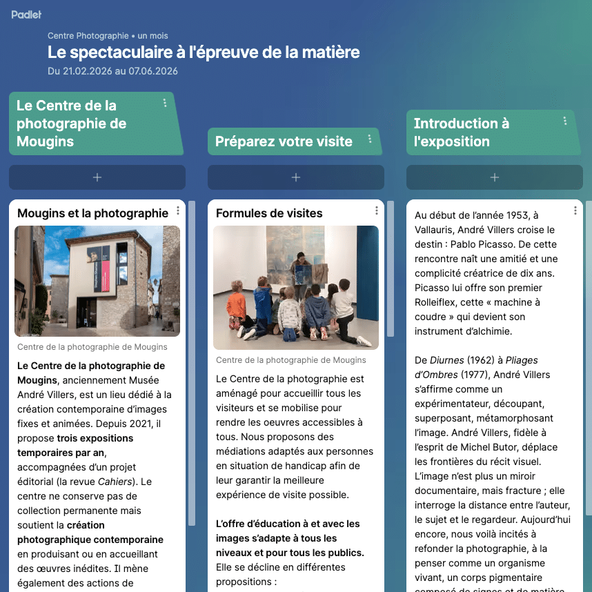 Le centre de documentation est accessible aux étudiants, enseignants et chercheurs uniquement sur rendez-vous, par demande écrite à l’adresse : centrephotographie@villedemougins.com en motivant l’objet de la recherche.